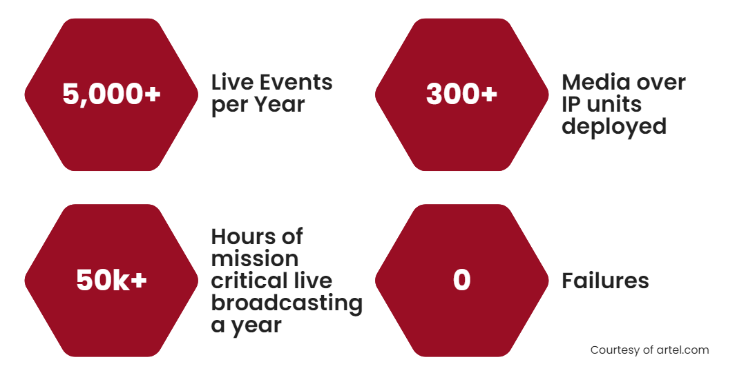 Artel Video Systems is the world’s leading provider of large-scale broadcast platforms used for multi-media transport by stadiums, government, broadcast studios, enterprises and more. With its technical advances in satellite, optical networks, IP (Internet Protocol) and video-over-fiber networks, Artel is a recognized pioneer in the media transport industry. The company has received two Emmy Awards, 2014 and 2017, among many industry awards that recognize their engineering and technology innovations.